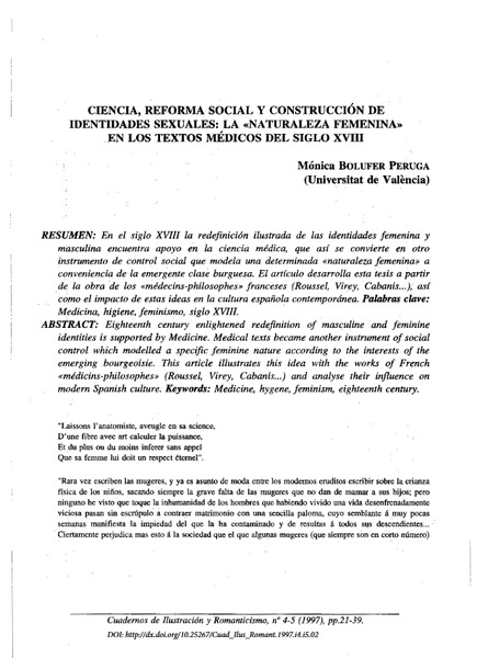 Ciencia, reforma social y construcción de identidades sexuales: la "naturaleza femenina" en los textos médicos del siglo XVIII